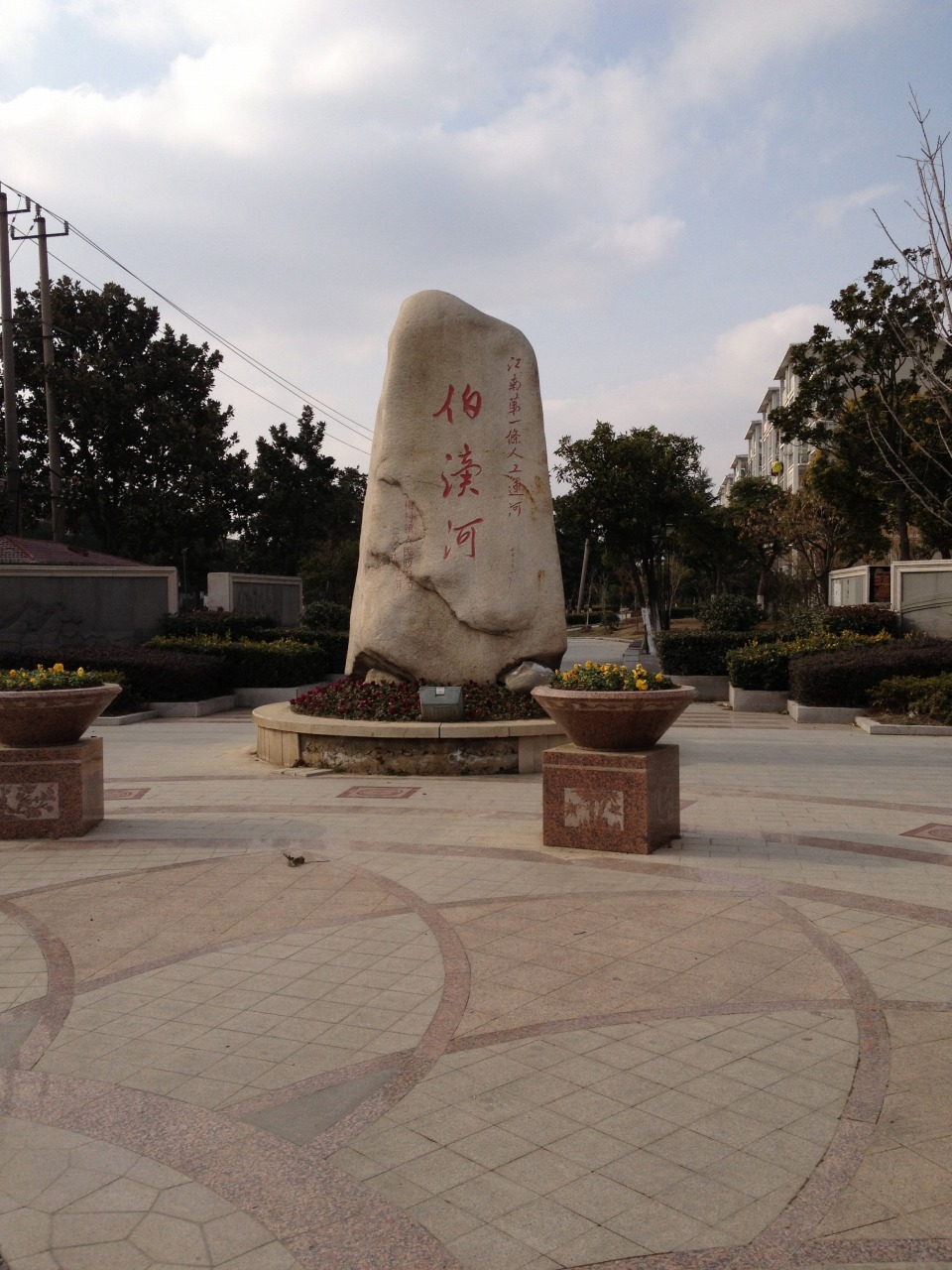2007年に梅村鎮人民政府により立てられた「江南第一条人工運河 伯瀆河」の石碑。