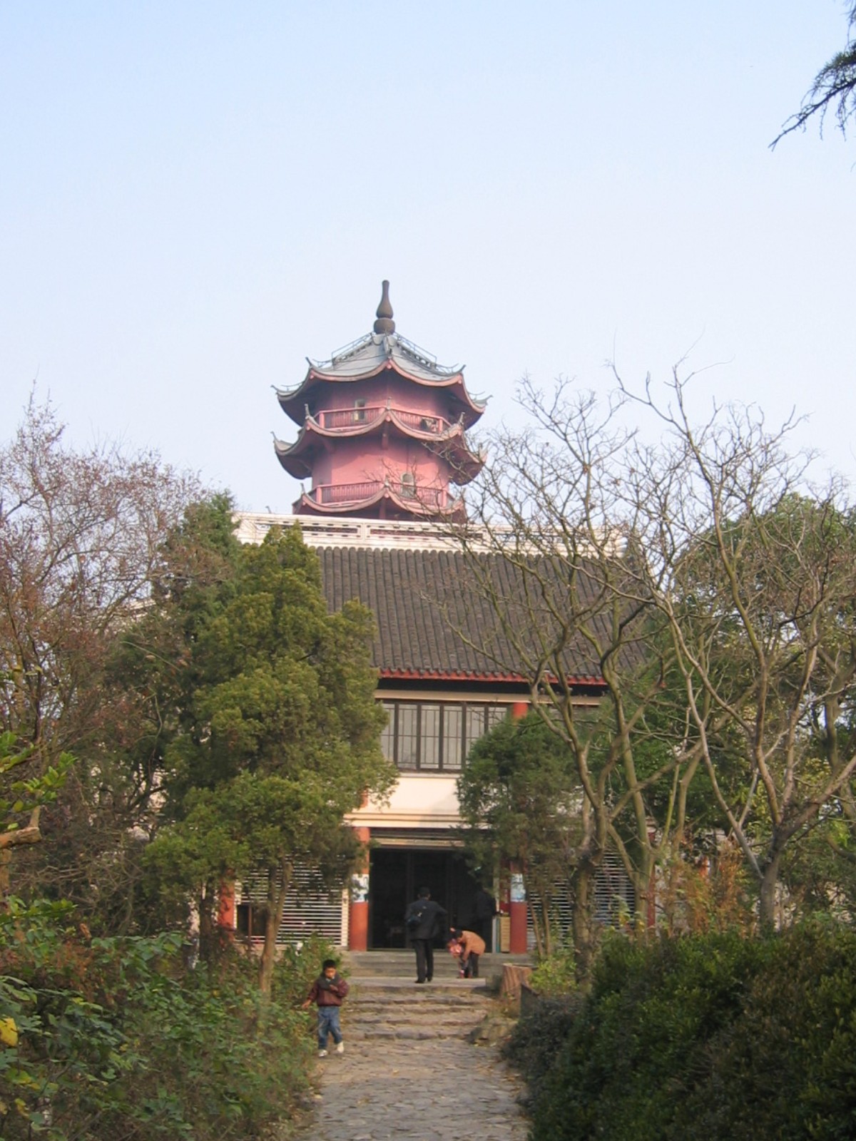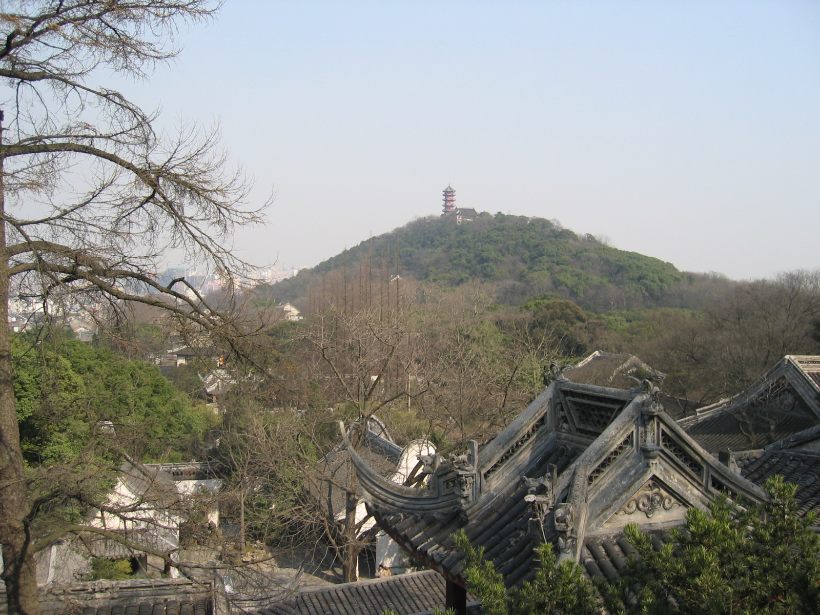 大運河側の入り口から見た錫山。頂上の塔が龍光塔。