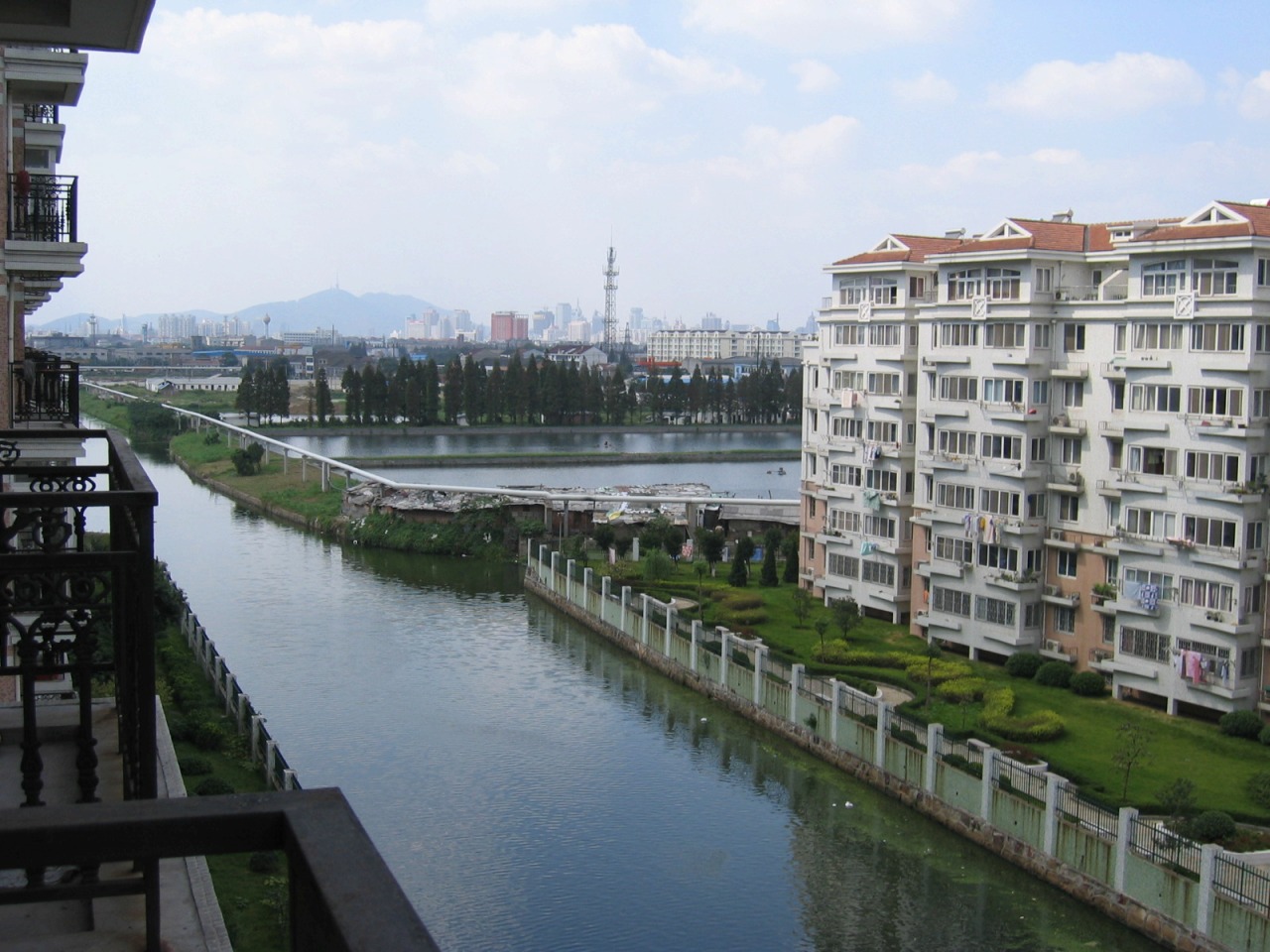太湖花園の住んでいた部屋からの風景。現在では奥の水面の見えてる場所、右の写真の奥に見える広がりもすべて高層マンションが建っています。