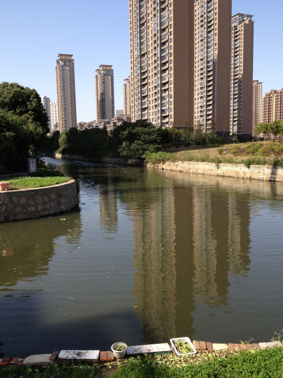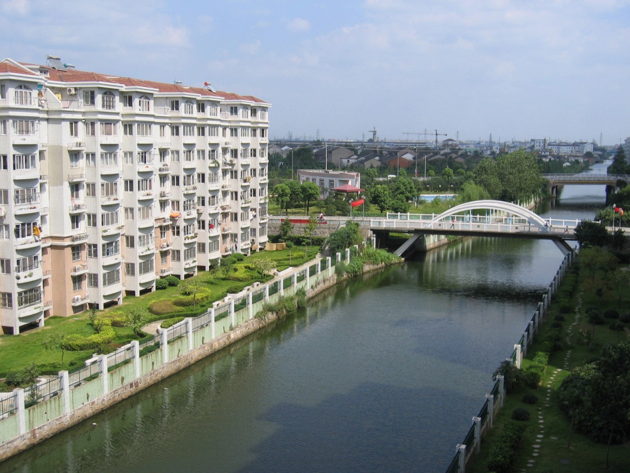 暇日広場のそばの紅旗花園脇の運河。十字路になっています。