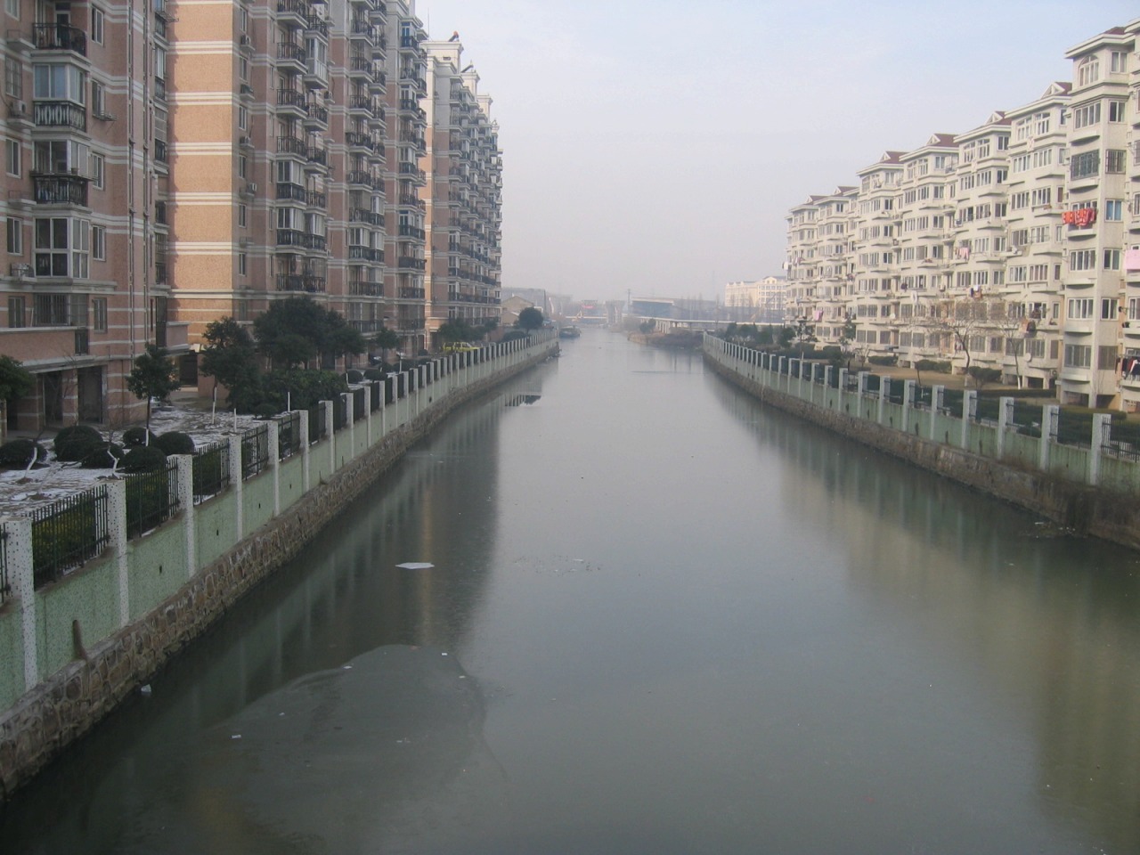 よく見ると運河に氷が張っています。無錫の冬は寒く、氷点下5℃くらいになる日があります。