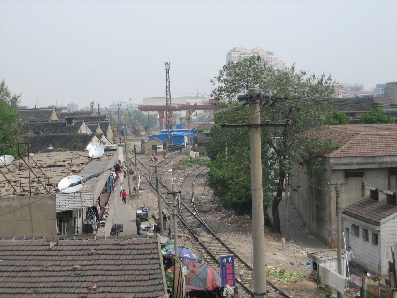 2004年と2008年の無錫駅の北側。民家の間を線路が走り、貨物列車が入れ替えをやっていました。