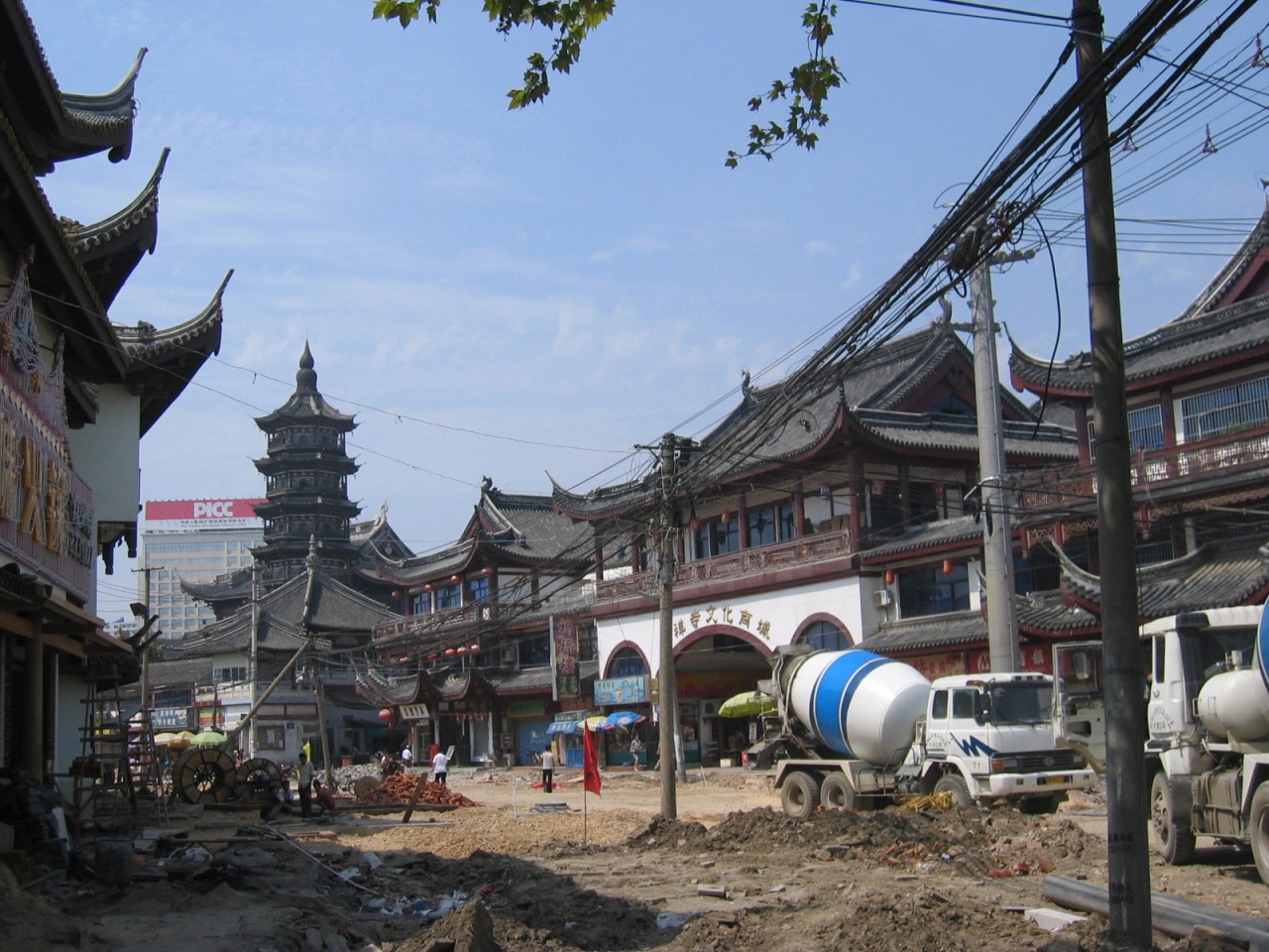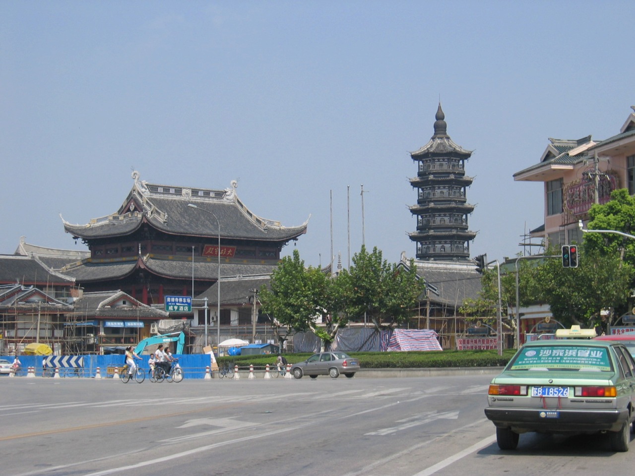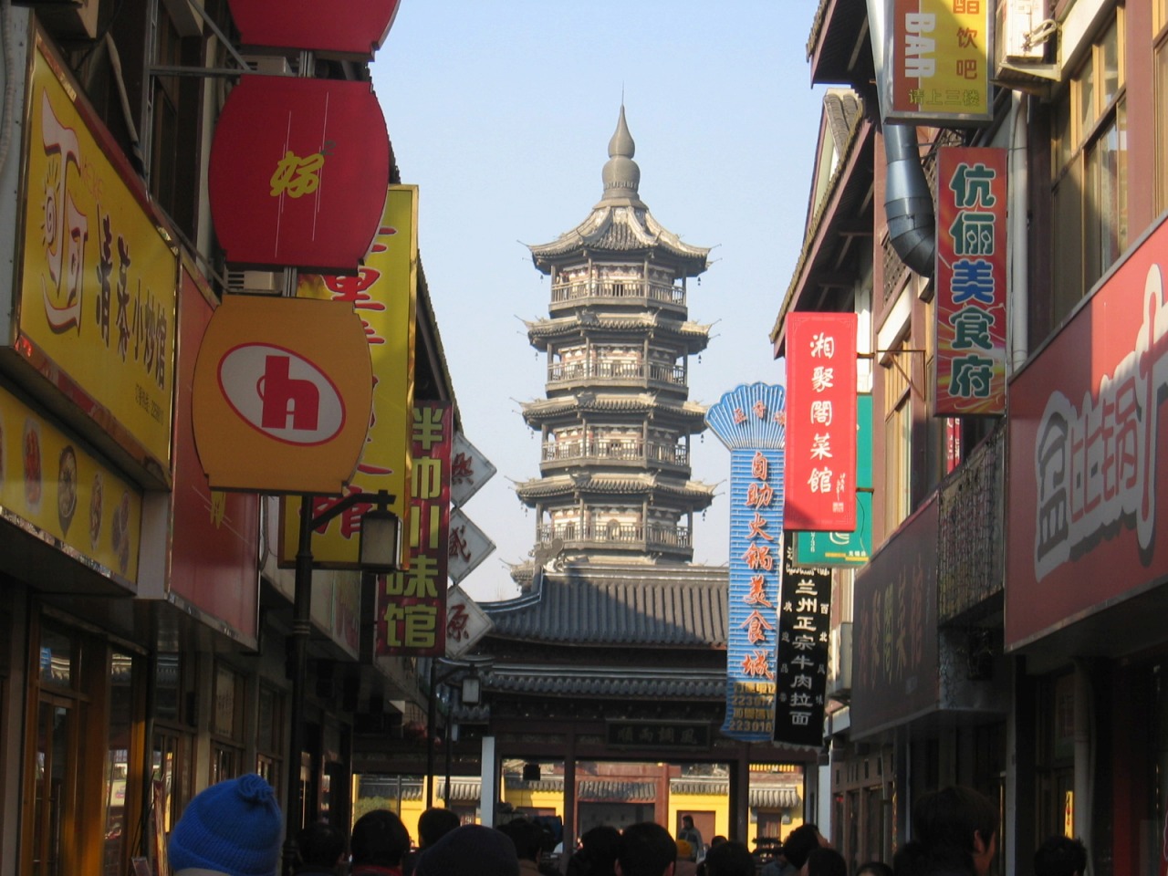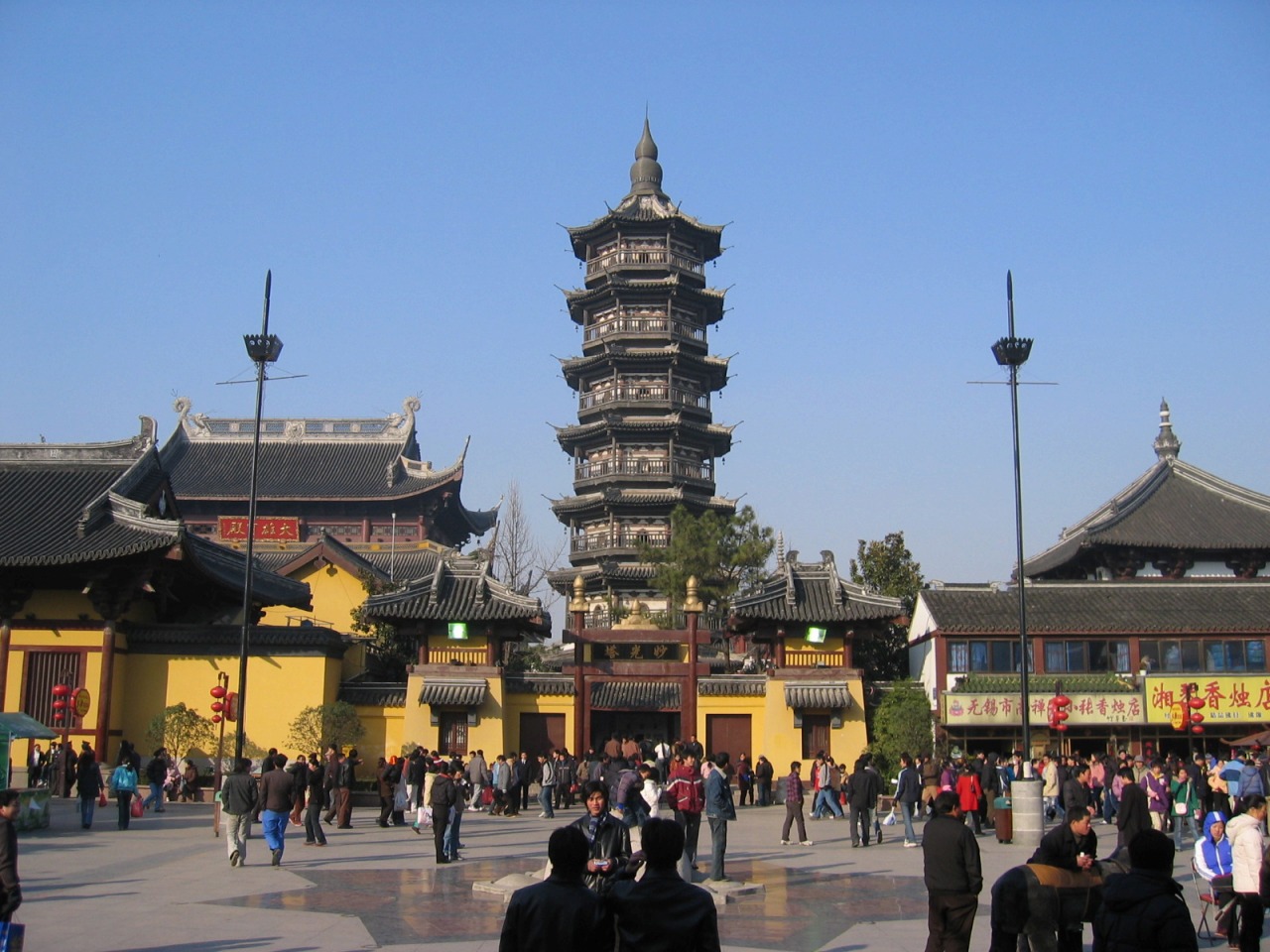 無錫の象徴と言ってもよい、妙光塔が聳え、大きな仏殿があります。周りは一見レトロな商城(ショッピング街)になっていますが、2003年以降に整備されたものです。