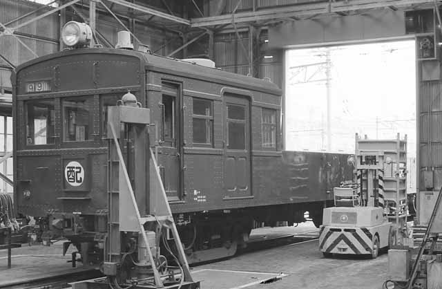 雑形クエ形戦時統合で国鉄路線となった線区で使用されていた社形電車を救援車に改造したものです。 |