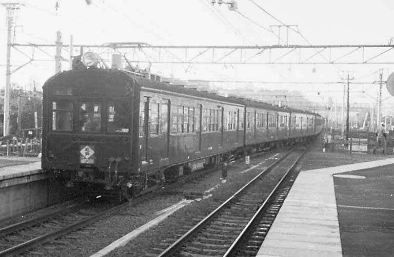 クモハ73628先頭の付属3両編成(松戸電車区 昭45.10.30) |
