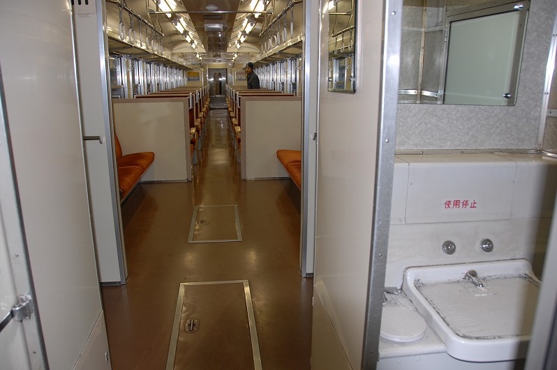 1965年川崎車輛製。汚物処理装置、トイレ部の臭気抜き口なし。2010年廃車