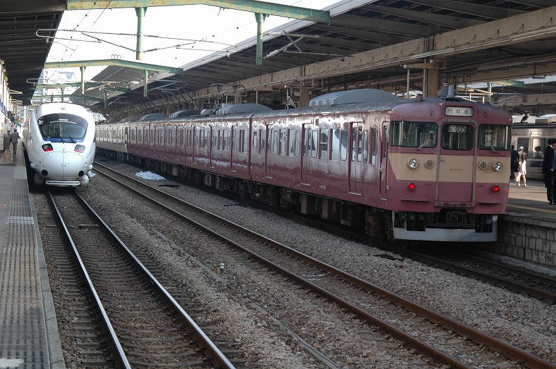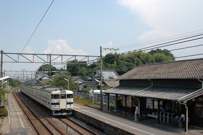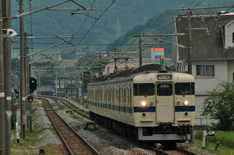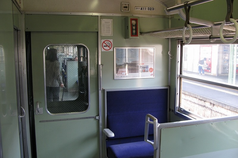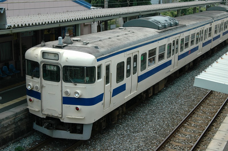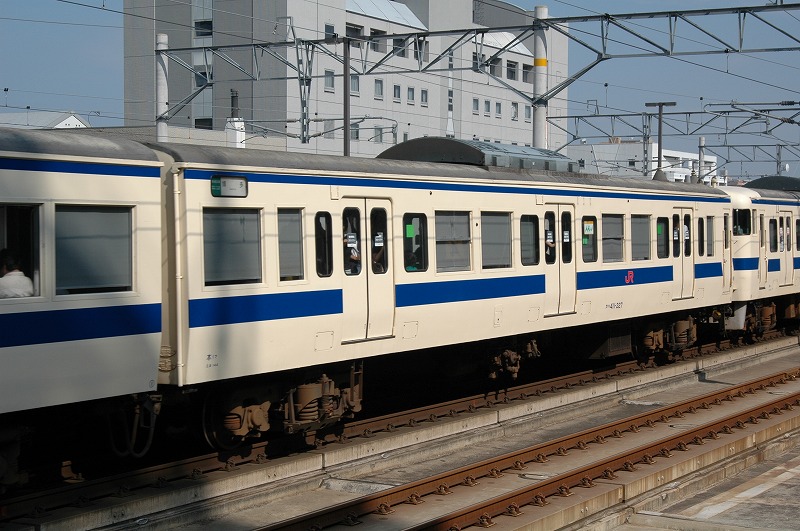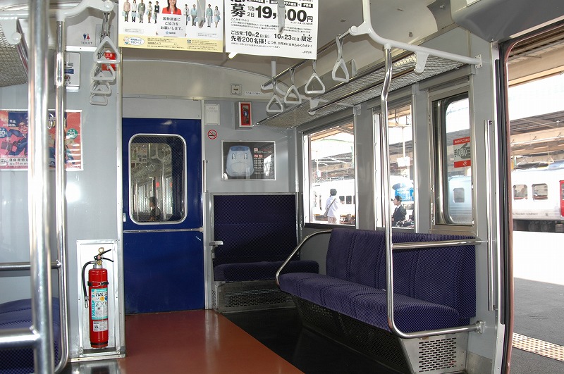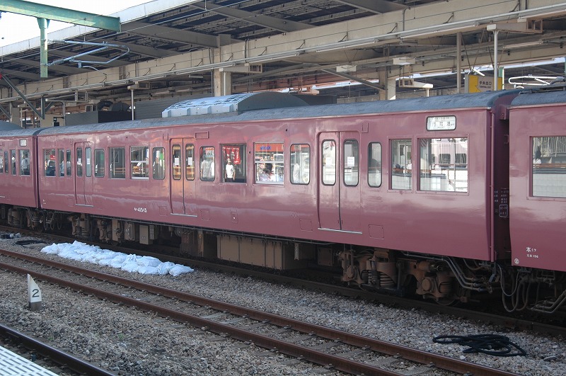 1974年日立製作所製。基本番台の奇数向きTc。1998年車両延命、ロングシート化、トイレ撤去工事施工。②-④側の写真が無いため、①-③側です。2012年廃車