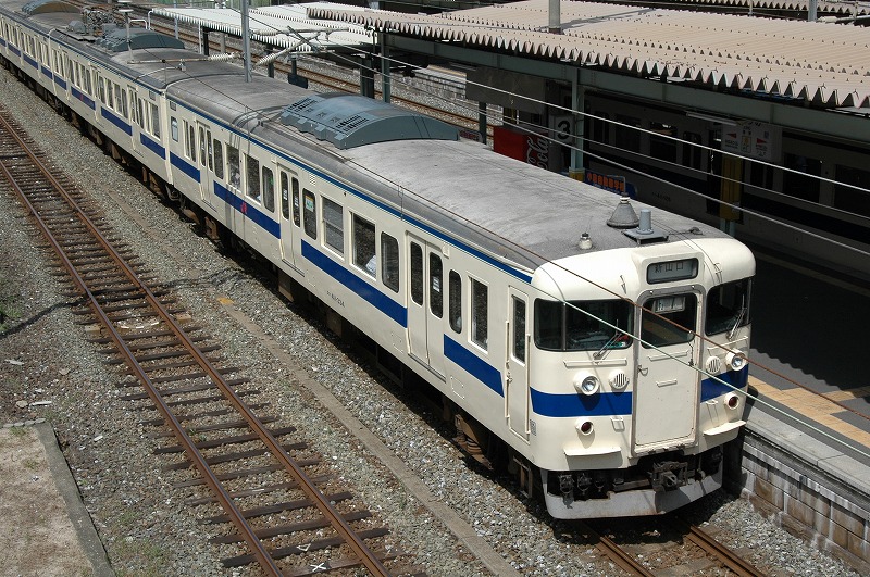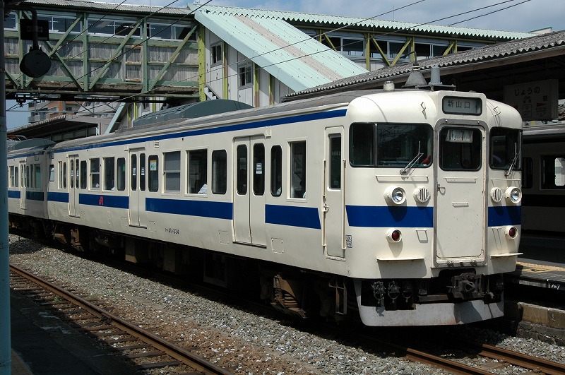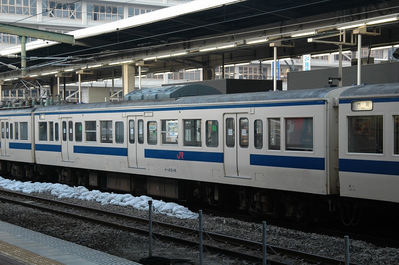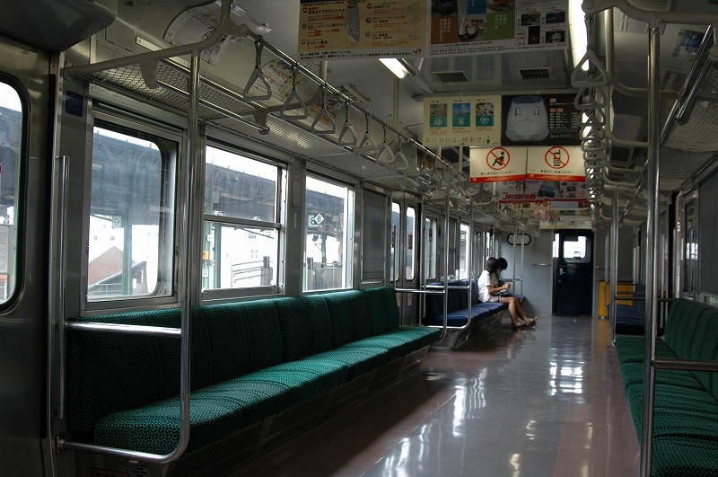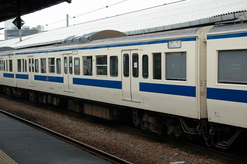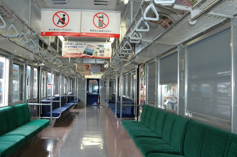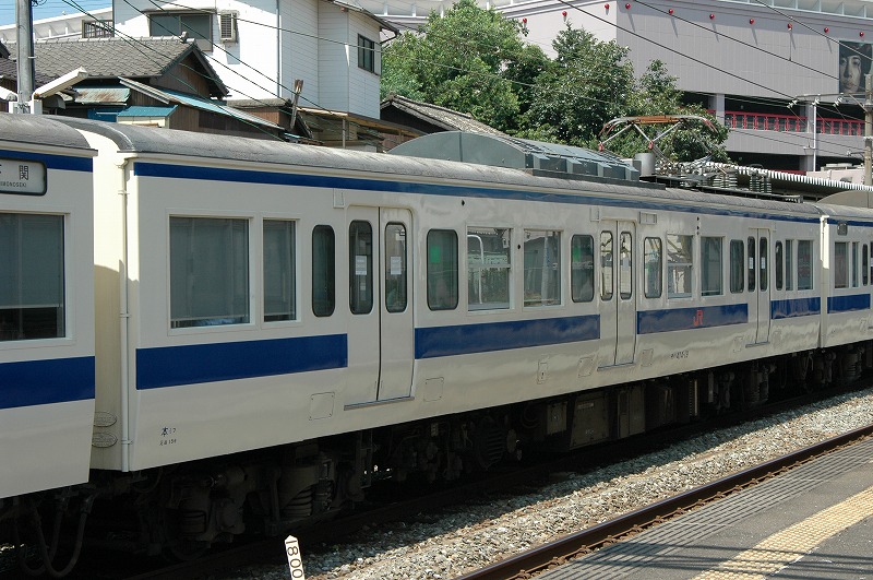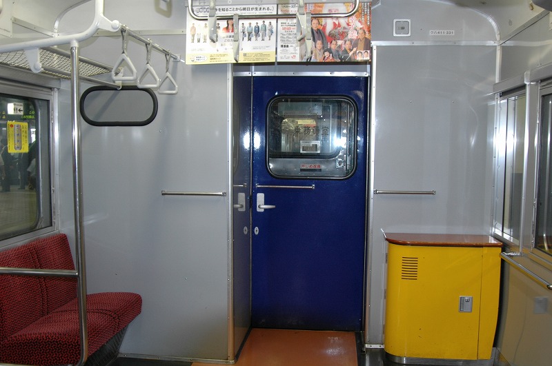 1975年日立製作所製。基本番台の奇数向きTc。1998年小倉工場にて車両延命、ロングシート化、トイレ撤去工事施工。②-④側の写真が無いため①-③側です。2013年廃車