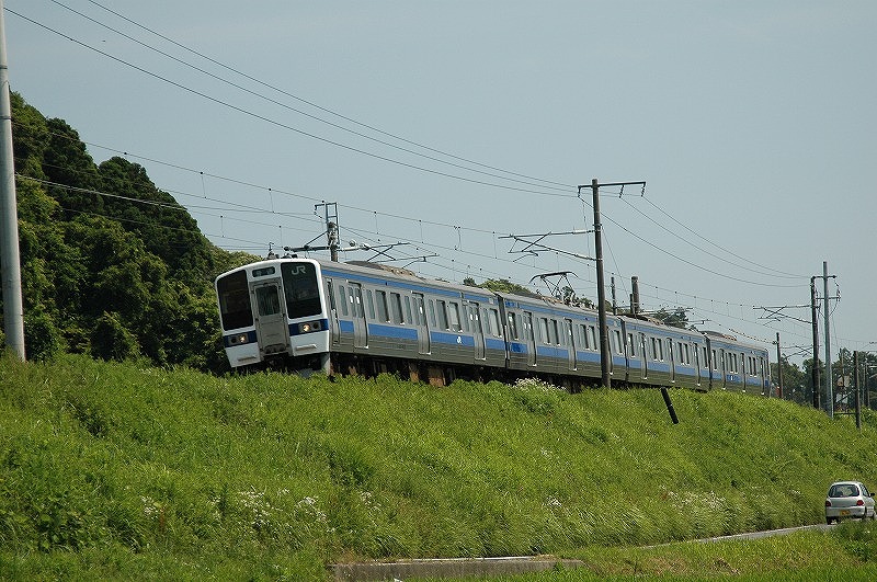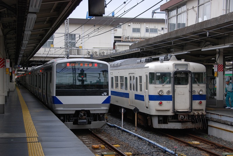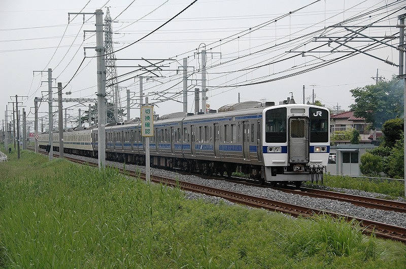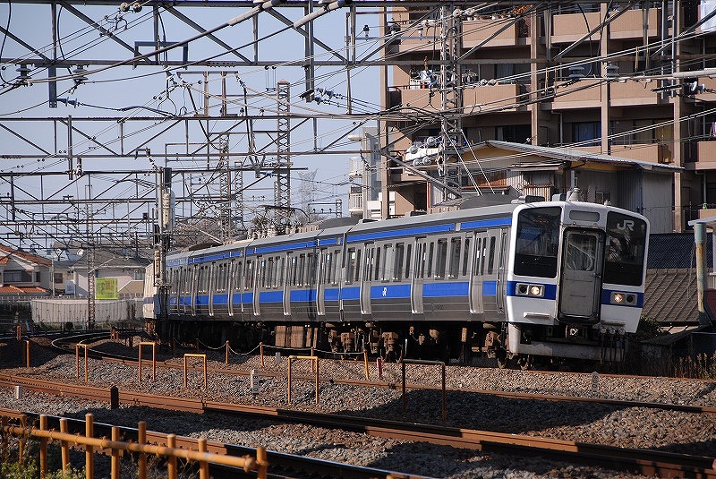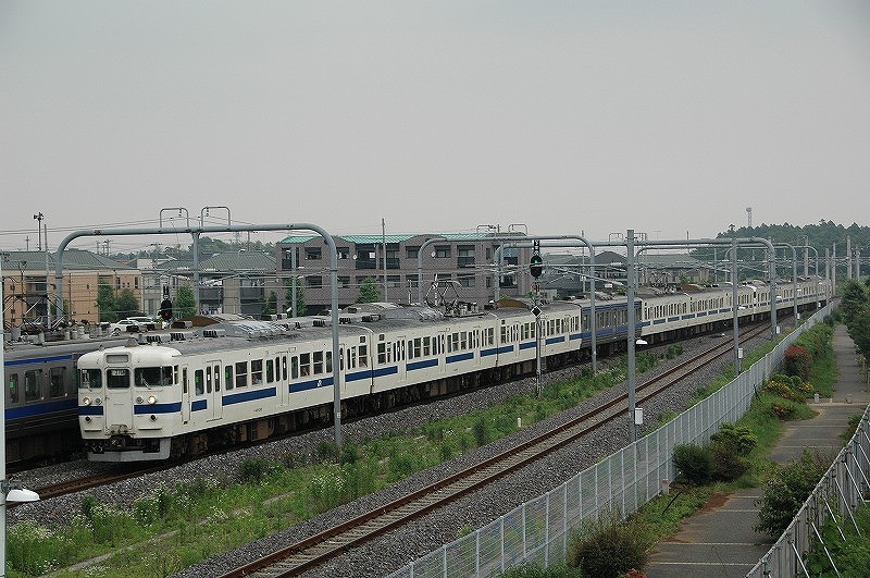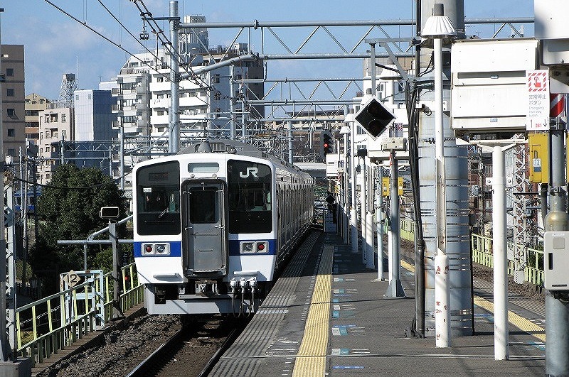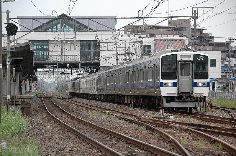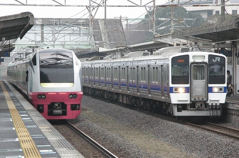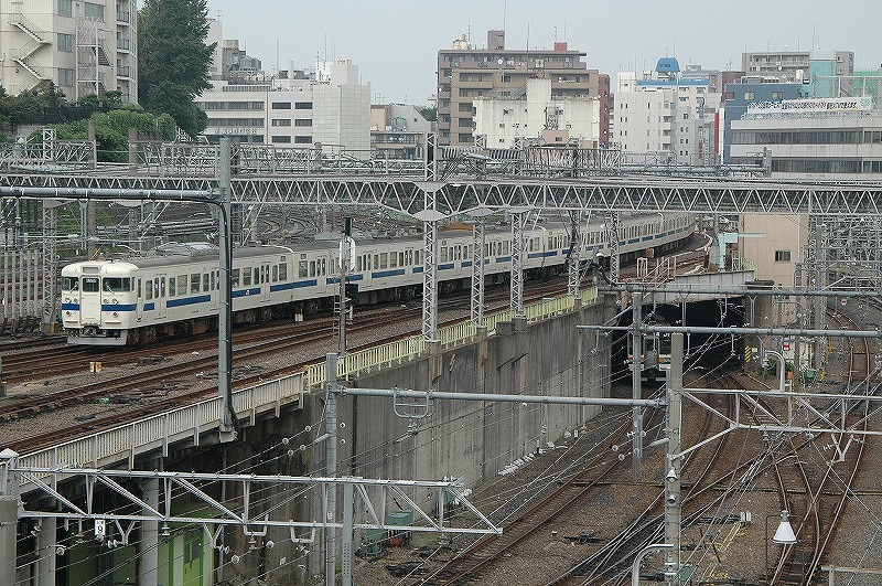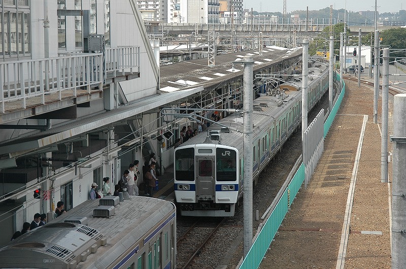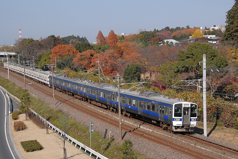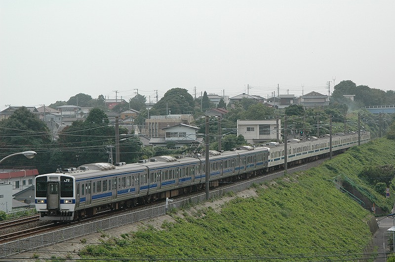 取手駅を発車する上り列車 常磐緩行線や快速231系とともに