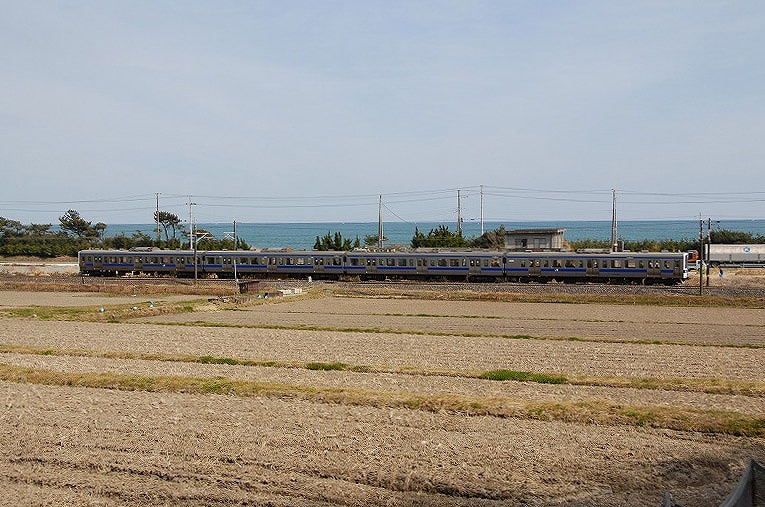 海岸に沿う常磐線だが海と背景とする画像を撮れる場所は少ない