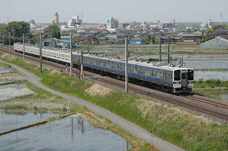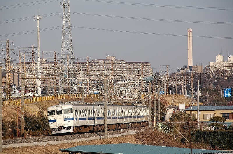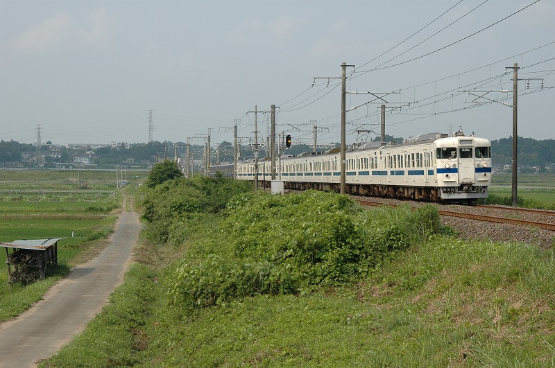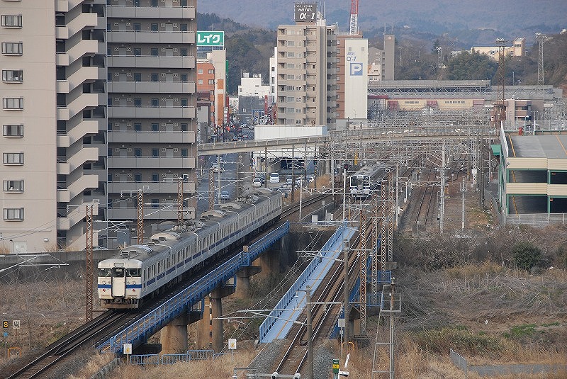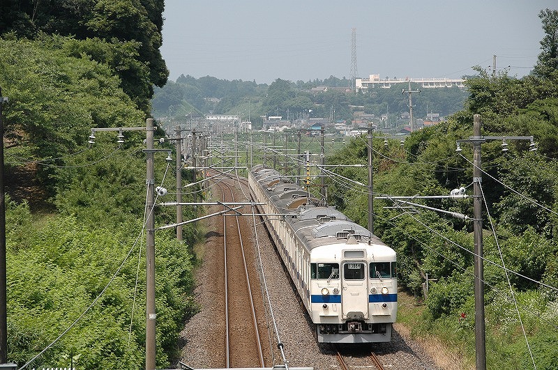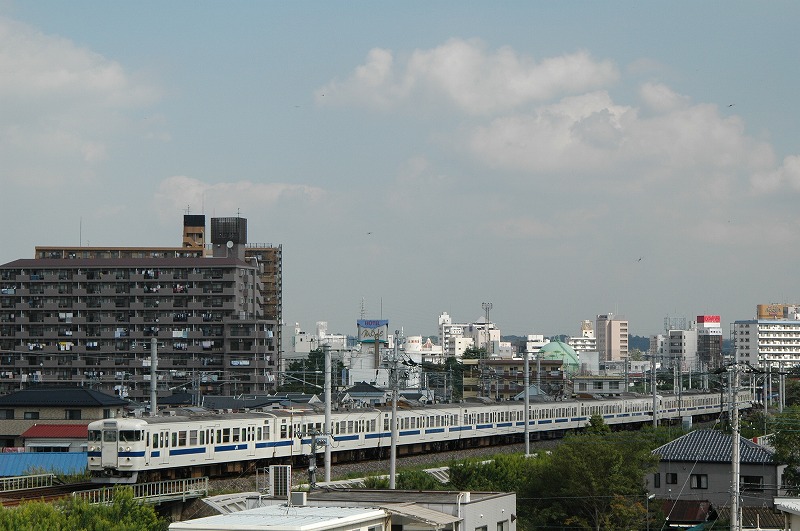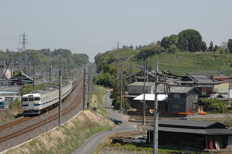 国道6号線(水戸街道)近くから上り列車を