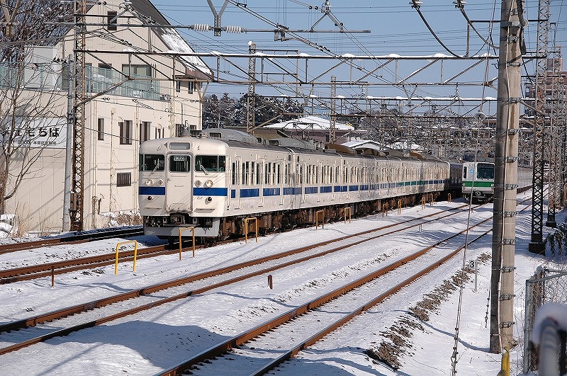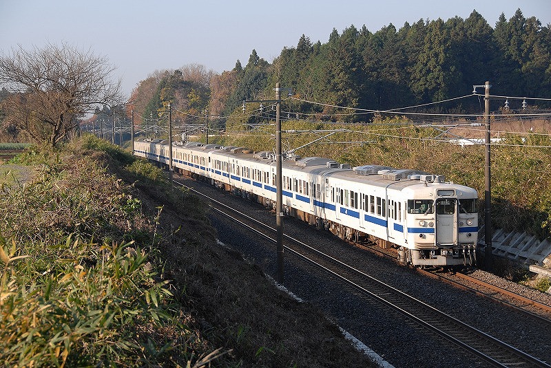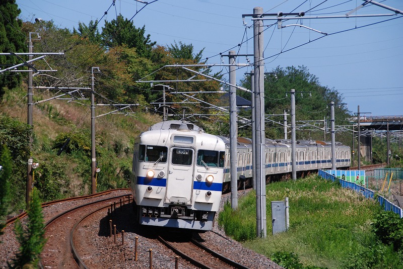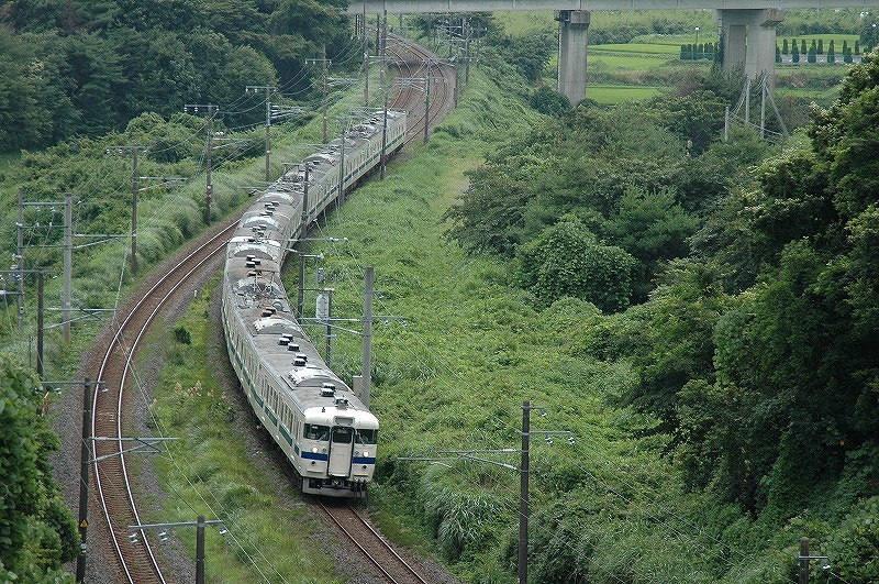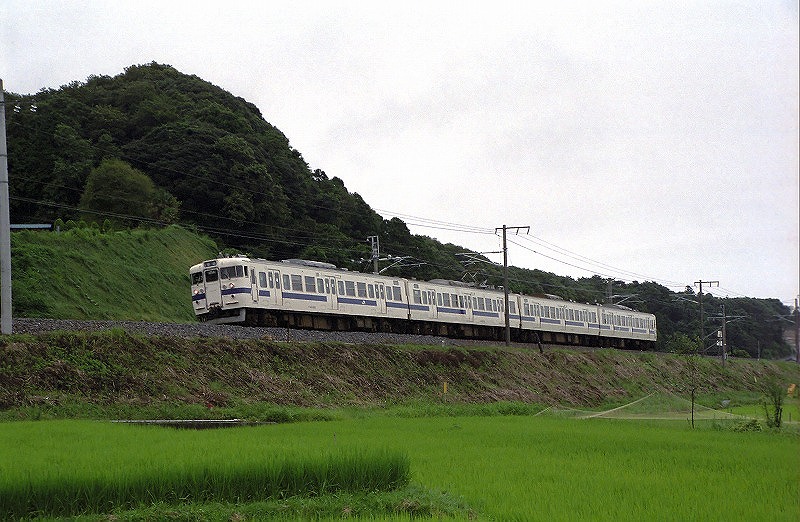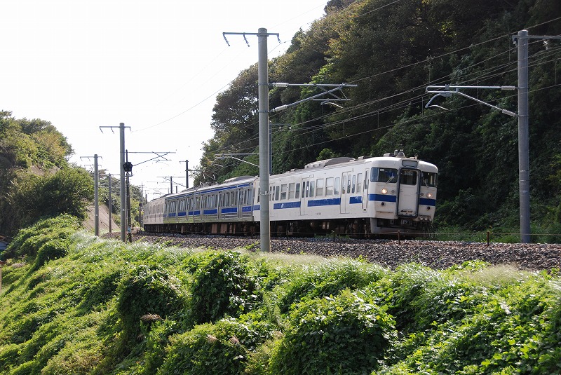 撮影当時415系は「いわき」以北では数往復の運転でしたが、朝7時頃455系9連と交換する上り8連