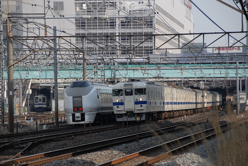 下り「スーパーひたち」とすれ違う上り列車
