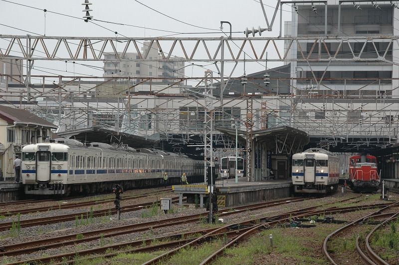 531系の投入で廃車となる415系、高萩駅にはホームを挟んで駅の東西に大規模な留置線がある