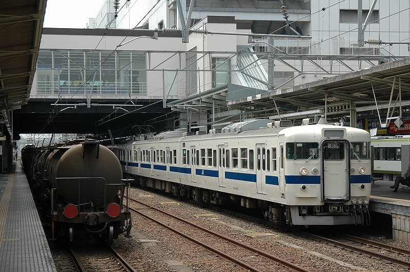 左のタンク車は信越線の安中まで行く通称「安中貨物」。水戸駅12:30頃の通過