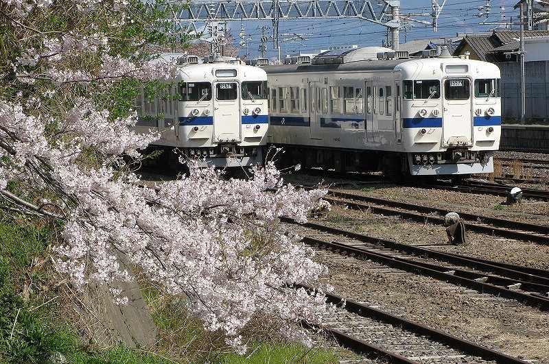 廃車になった春、疎開留置先である勿来駅では桜が満開でした