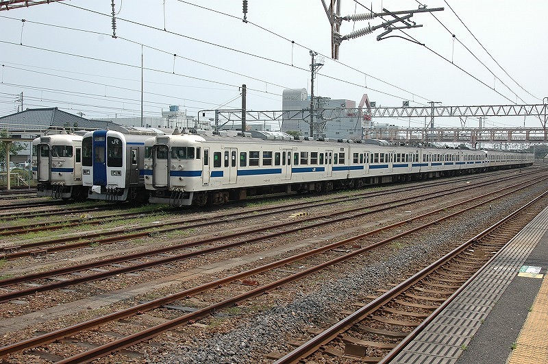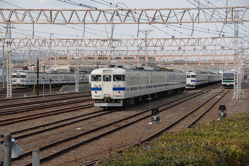 稼働開始までの一時期、新車の531系が留置されていた場所に廃車となる415系が大量に疎開留置された