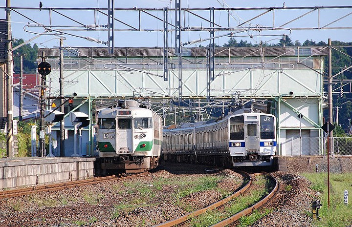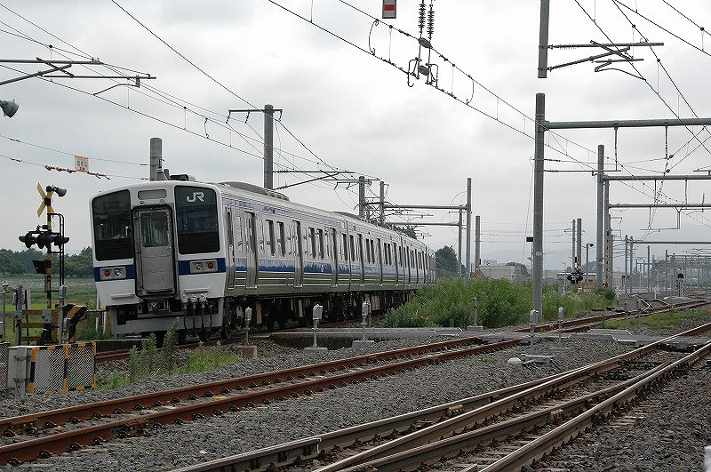 直流電化と交流電化の切替地。初期の交直両用車403系などまでは、この切替地(デッドセクション)通過の際は一旦車内蛍光灯が消え通過後に再点灯していました。デッド区間通過時は前照灯を片方滅灯させています。