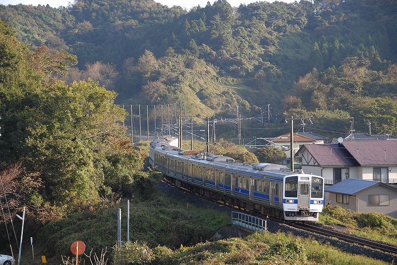 四ツ倉の市街地に向かう上り列車
